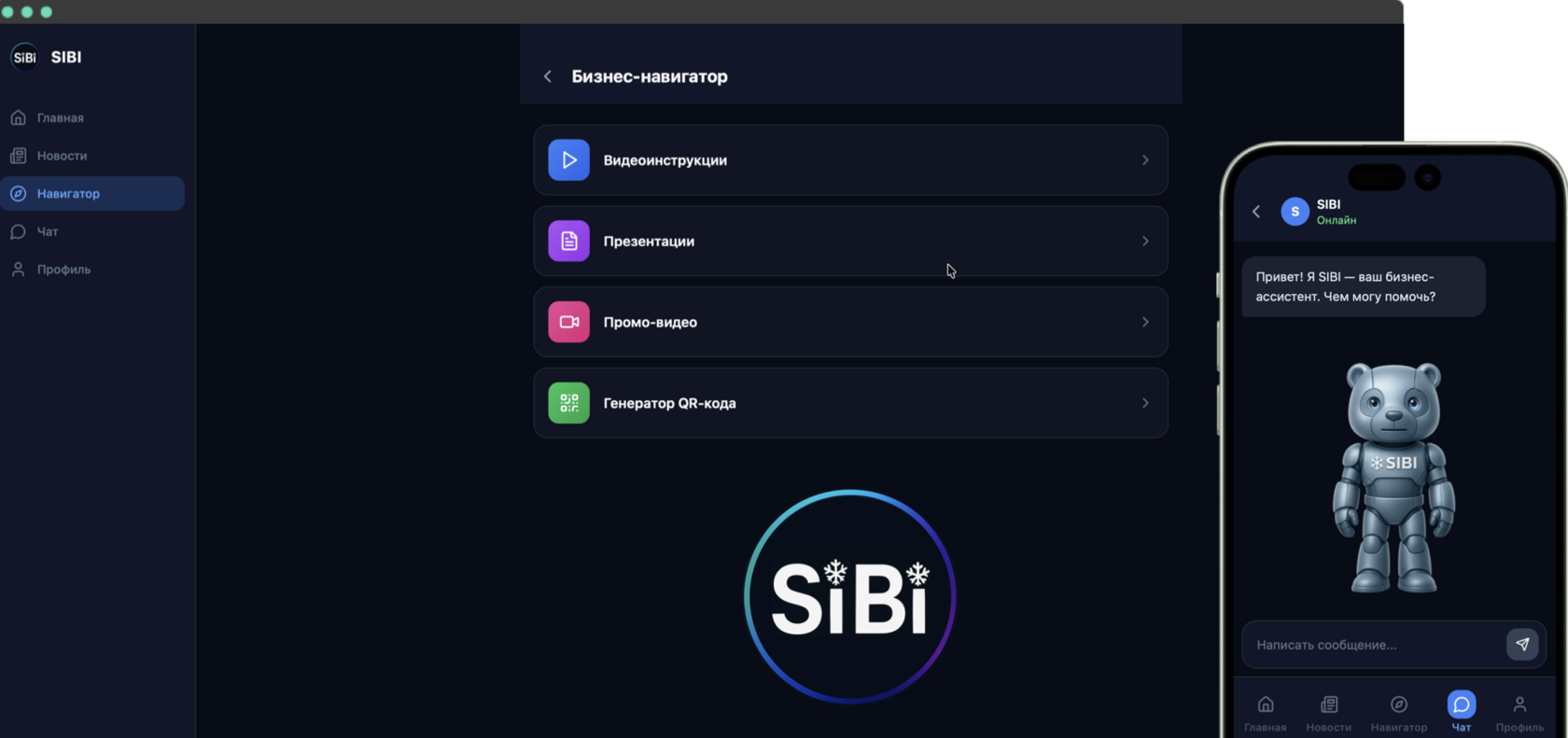 SiBi — это твой личный AI-агент, обученный помогать в построении бизнеса с Siberian Wellness. В SiBi ты найдёшь видеоинструкции, презентации, промо-видео, генератор QR-кодов и многое другое.